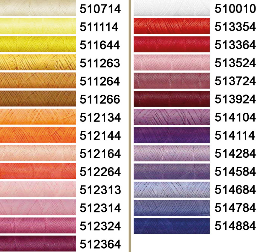 100% cotton N° 30, size Nm 50/3 (corresponds approximately to linen thread Nel 40/2, Tex 20 x 3), 100 meters