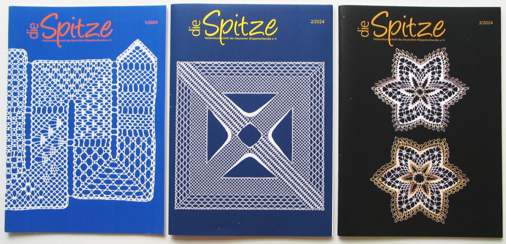 Revues de la fédération "Deutscher Klöppelverband" avec photos en couleur et modèles, texte en allemand.