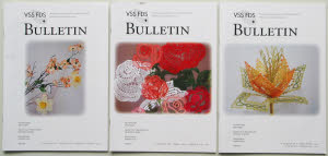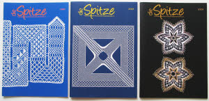 4 Revues de "l'Organisation Internationale de la Dentelle au Fuseau et à l'Aiguille" d'occasion avec modèles, texte en anglais et français.