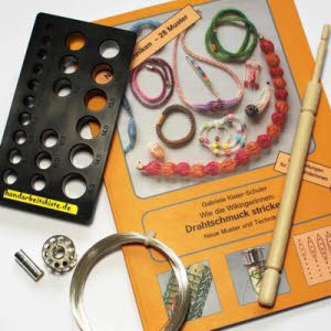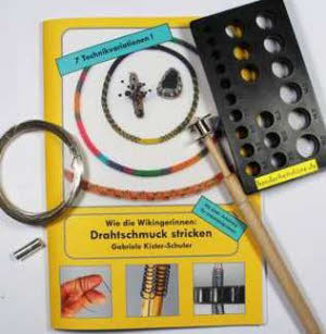le livret "Wie die Wikingerinnen: Drahtschmuck stricken I " pour droitiers et gauchers avec toutes les instructions pour la technologie et les idées pour concevoir des chaînes.