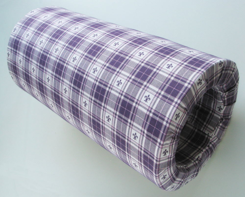 Feutre de 3 cm d'épaisseur sur rouleau de carton. La housse en tissu est montée fixe.