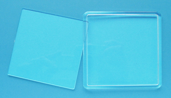 Square coaster in clear plastic in two parts, inside 9 x 9 cm