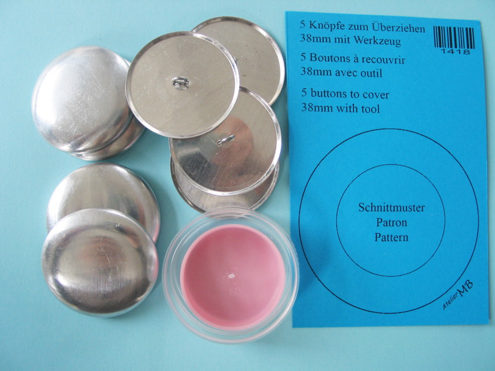 5 Two-piece metal buttons 38 mm for covering, including pattern and assembly tool