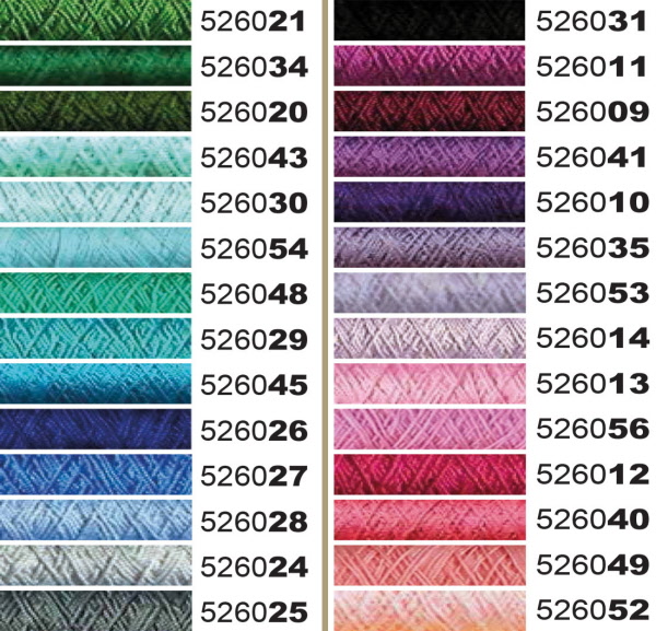 100% cotton NeB 20/2 (corresponds approximately to linen thread Nel 50/3 or 35/2, dD 34) mercerized, silky shining, very stable and tearproof. 200 meters