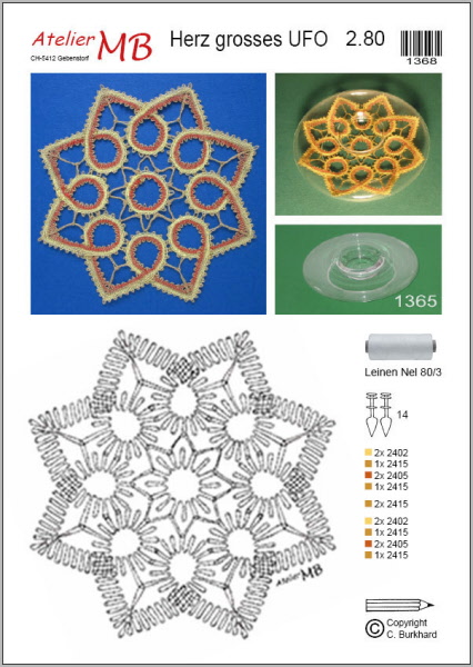 Fournitures recommandées: Lin Goldschild Nel 80/3 rouge ou bleu (2403 ou 2414), Bockens Nel 60/2 rouge (520), Code 1974