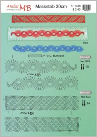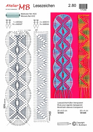 Brochure contenant 10 modèles pour signets, 7 en différentes largeurs correspondant aux étuis à signet et 3 en forme de croix, avec indications des fournitures et photos en couleur, 21x15cm, 16 pages, texte en allemand, français et anglais.