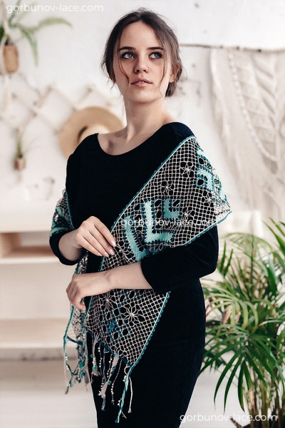 Modèle avec détails et instructions de travail allemandes, photo en couleur de la dentelle, 9,5 x 5,5 cm.