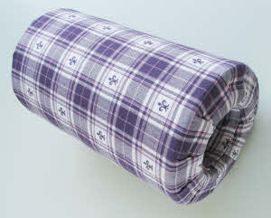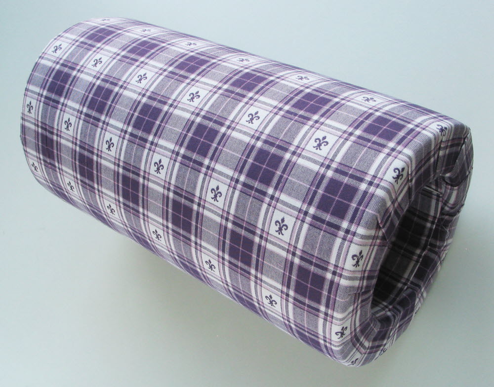 Feutre de 3 cm d'épaisseur sur rouleau de carton. La housse en tissu est montée fixe.