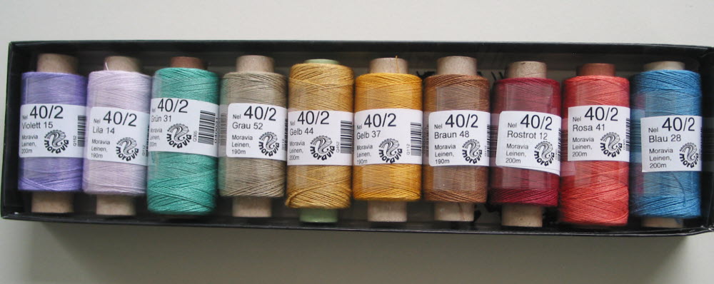 Fil de lin Nel 40/2 en divers couleurs, ca 190 metres.