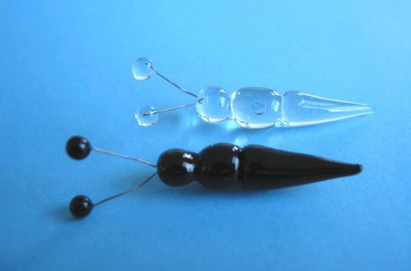 Corps papillon en verre ca 3.5cm, avec cornes ca 5cm