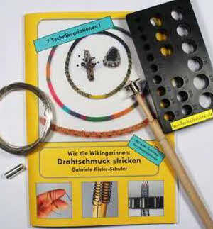 - en allemand: le livret "Wie die Wikingerinnen: Drahtschmuck stricken I " pour droitiers et gauchers avec toutes les instructions pour la technologie et les idées pour concevoir des chaînes.