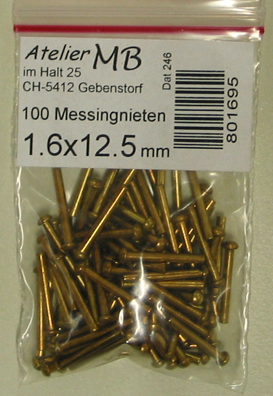 100 Nieten mit Schaft, ø 1.6 x 12 mm, Messing