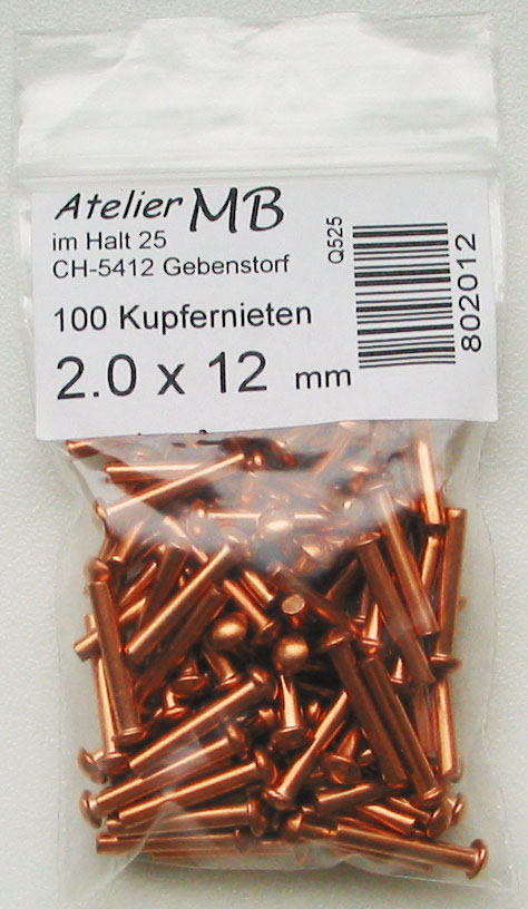 100 Nieten mit Schaft, ø 2.0 x 12 mm, Kupfer