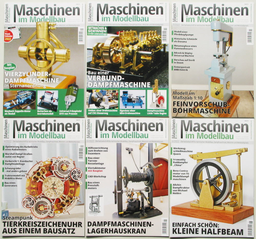 6 Hefte Maschinen im Modellbau 2022, Text deutsch.
