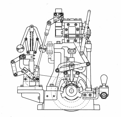 Vertikale Einzylinder-Dampfmaschine oder Zweizylinder-Dampfmaschine.