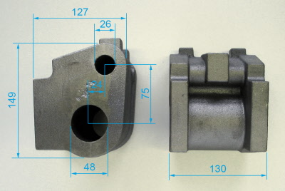 Zylinderrohling zu BR64, L130, B127, H149, Bohrungen 48mm / 26mm, GG