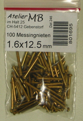 100 rivets, ø 1.6 x 9.5 mm, brass