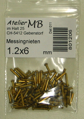 100 rivets, ø 1.2 x 9.5 mm, brass