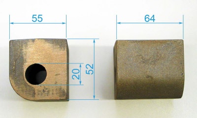 Cylinder size 64x55x52mm, bore 20mm, gunmetal